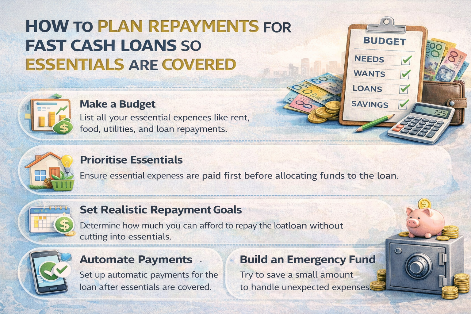 • The Government's MoneySmart website shows you how small amount loans work and suggests other options that may help you.